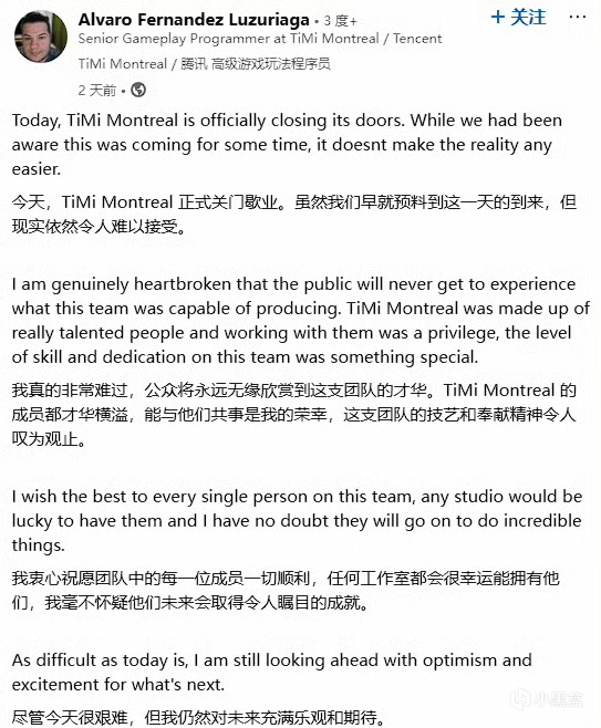 在一则现已无法查看的 LinkedIn 动态中,一名天美蒙特利尔的程序员透露工作室已经关闭,并指出员工们“其实早已知情有一段时间”。